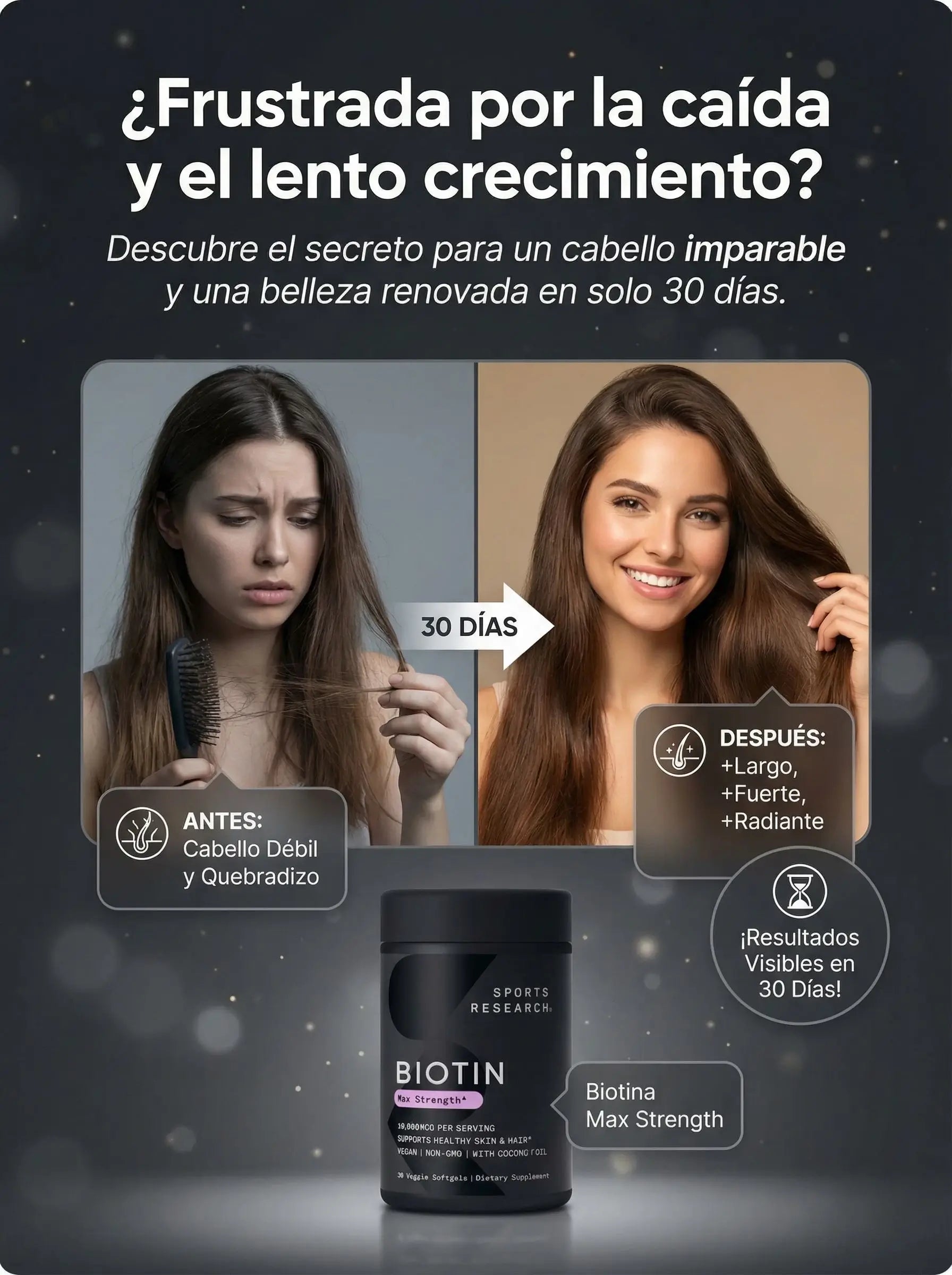 Generalmente los cambios se notan entre 3 a 8 semanas de uso constante, dependiendo de cada persona, sus hábitos y su nivel de deficiencia de biotina.