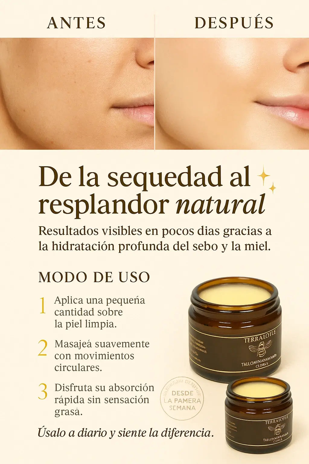 Sí ✅. Está hecho con sebo purificado y miel cruda, ingredientes que ayudan a calmar la piel, reducir irritaciones y mejorar su barrera natural.